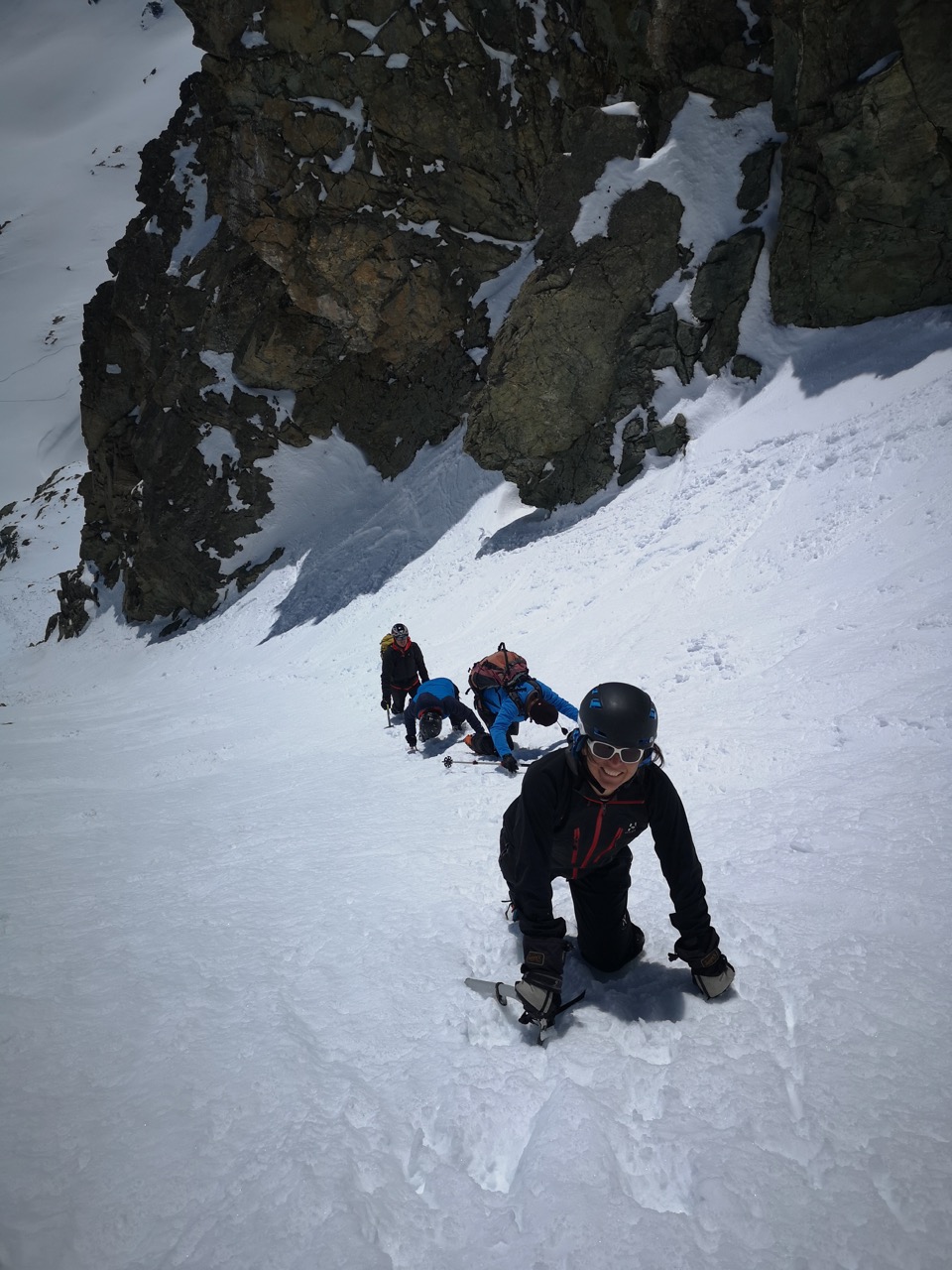 Mit dabei: Rita Hedley, die zum ersten Mal mit Steigeisen und Pickel unterwegs war, Roman Lehmann, Kurt Roos und Rosi Forrer