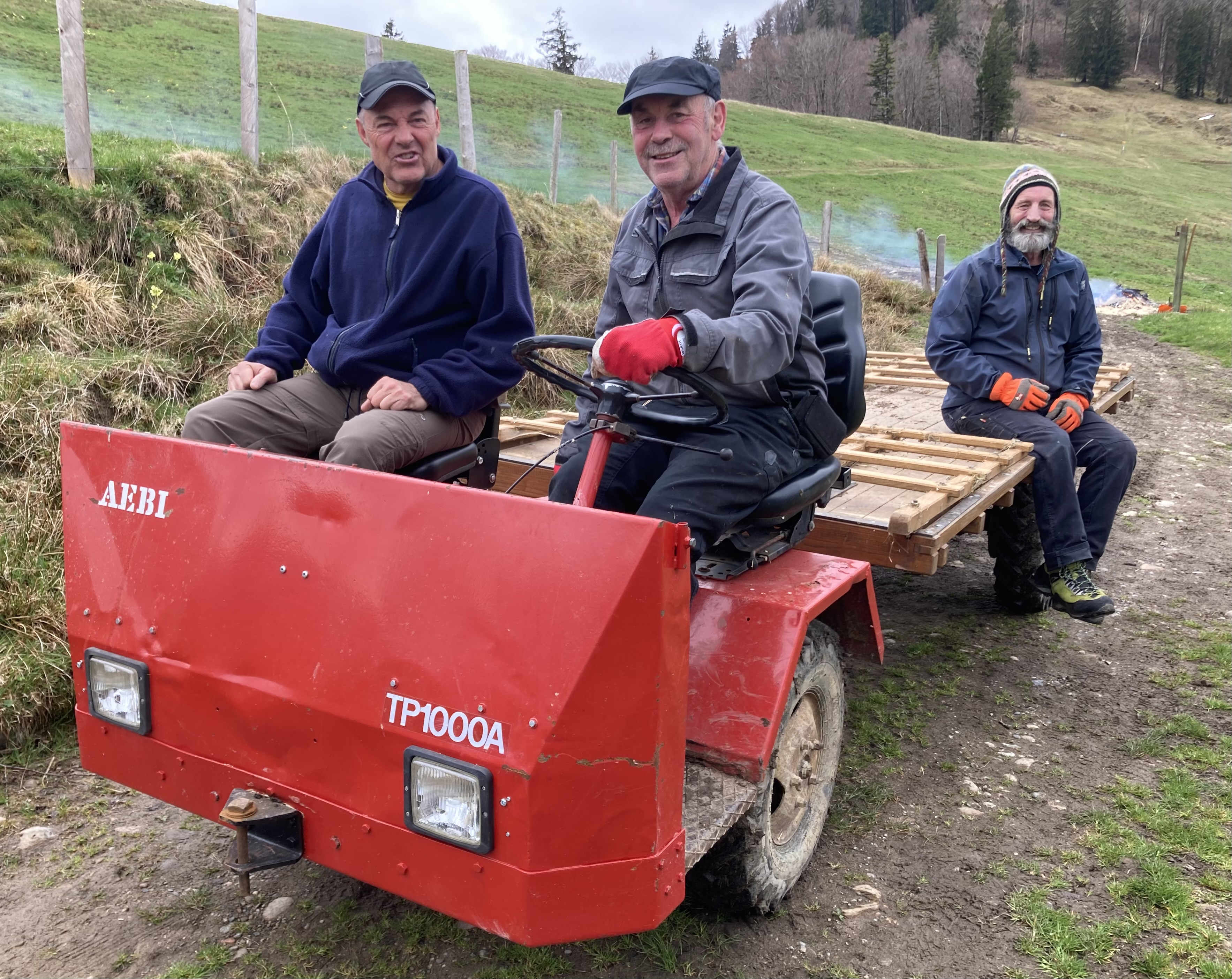 Zu sehen war noch ein neuer Aebi-Fahrer, und wie wir feststellten auf dem Beifahrersitz Altlehrer Meier, der vermutlich die Fahrprüfung abnahm. Sie kamen heil von der Holzweid zurück mit einem riesen Fueder Holz. Bravo.
