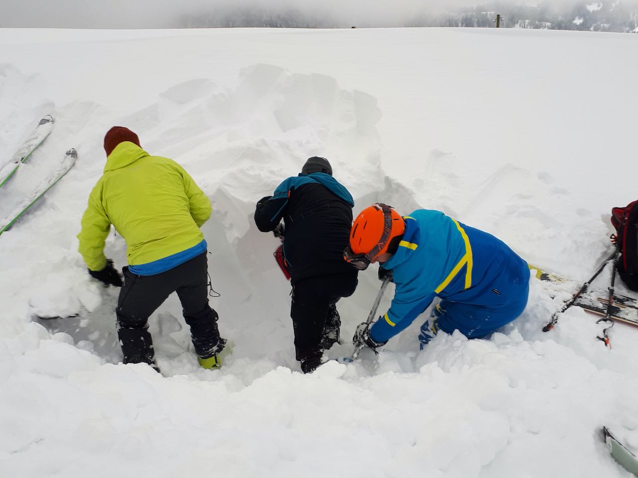 Bestens wurden wir dann von der Seniorengruppe kulinarisch versorgt, so dass wir uns nochmals nach draussen wagten für den zweiten Teil des Kurses. Wir übten uns noch in der LVS Suche, Sondieren und Schaufeln.