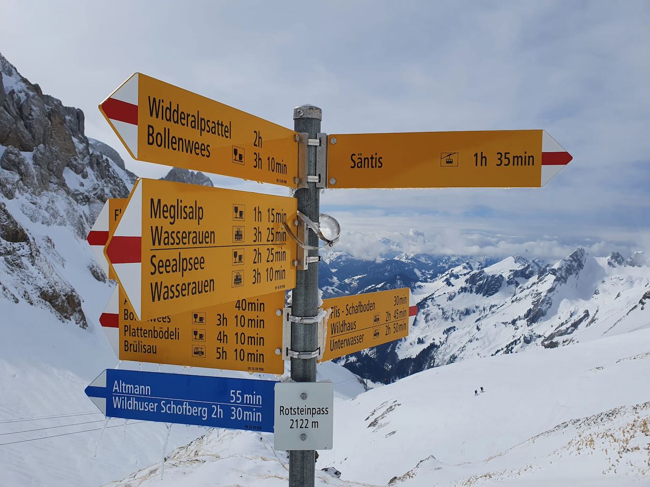 Dieses Wochenende steht ein aussergewöhnlichere Tour auf dem Programm: Rundtour Wagenlücke. Gemeinsam fahren wir mit dem Postauto auf die Schwägalp wo wir bereits auf erste Skifahrer und Tourengänger treffen. In der Bahn erfahren wir, dass mittlerweile wegen des Coronavirus erste Massnahmen getroffen wurden und alle umliegenden Skigebiete und Bergbahnen geschlossen wurden. Die Säntisbahn hat aber diese Anweisungen noch nicht erhalten, so transportiert sie weiterhin Touristen auf den Berg. Bei der Stütze zwei steigen wir alle frohgelaunt aus. Die Sonne scheint, die Aussicht ist herrlich. Bei der Abfahrt unterhalb des Schofbodens merken wir, dass es in den Vortagen weit hinauf geregnet hat. Wellblechfahren ist angesagt. Da es aber noch etwas geschneit hat, sind die Hänge gar nicht so übel zum Fahren, aber trotzdem recht anstrengend. Bevor wir Richtung Schofboden fahren können, müssen wir eine Krete überqueren. Wir binden also kurz unsere Skier auf und steigen ein paar Meter zu Fuss hoch. Weiter fahren wir einen steilen Hang hinunter. Unterhalb des Schofbodens fellen wir unsere Skier an. Langsam wird das Wetter schlechter. Gemütlich ziehen wir unsere Spur den etwas harten und vereisten Hang hoch. Auf dem Rotsteinpass kommt dann langsam Nebel auf. Zu unserem Erstaunen hat das Gasthaus offen. Ein paar Tourengänger haben den Weg noch von der Meglisalp her auf den Rotsteinpass gefunden. Gemeinsam essen wir eine feine Suppe in der etwas kühleren Gaststube. Nach dem Mittagessen trennt sich unsere Gruppe. Migg, Melanie und Conny fahren wieder ins Tal zurück. Der Rest der Gruppe fährt zur Meglisalp hinunter. Der Schnee wäre ganz ok. Sicht null. So wird die Abfahrt doch recht anstrengend. Die Abfahrt aber auf der anderen Seite war mit Sicherheit ein weniger grosses Vergnügen. Hart und Wellblech. Ratter, ratter.