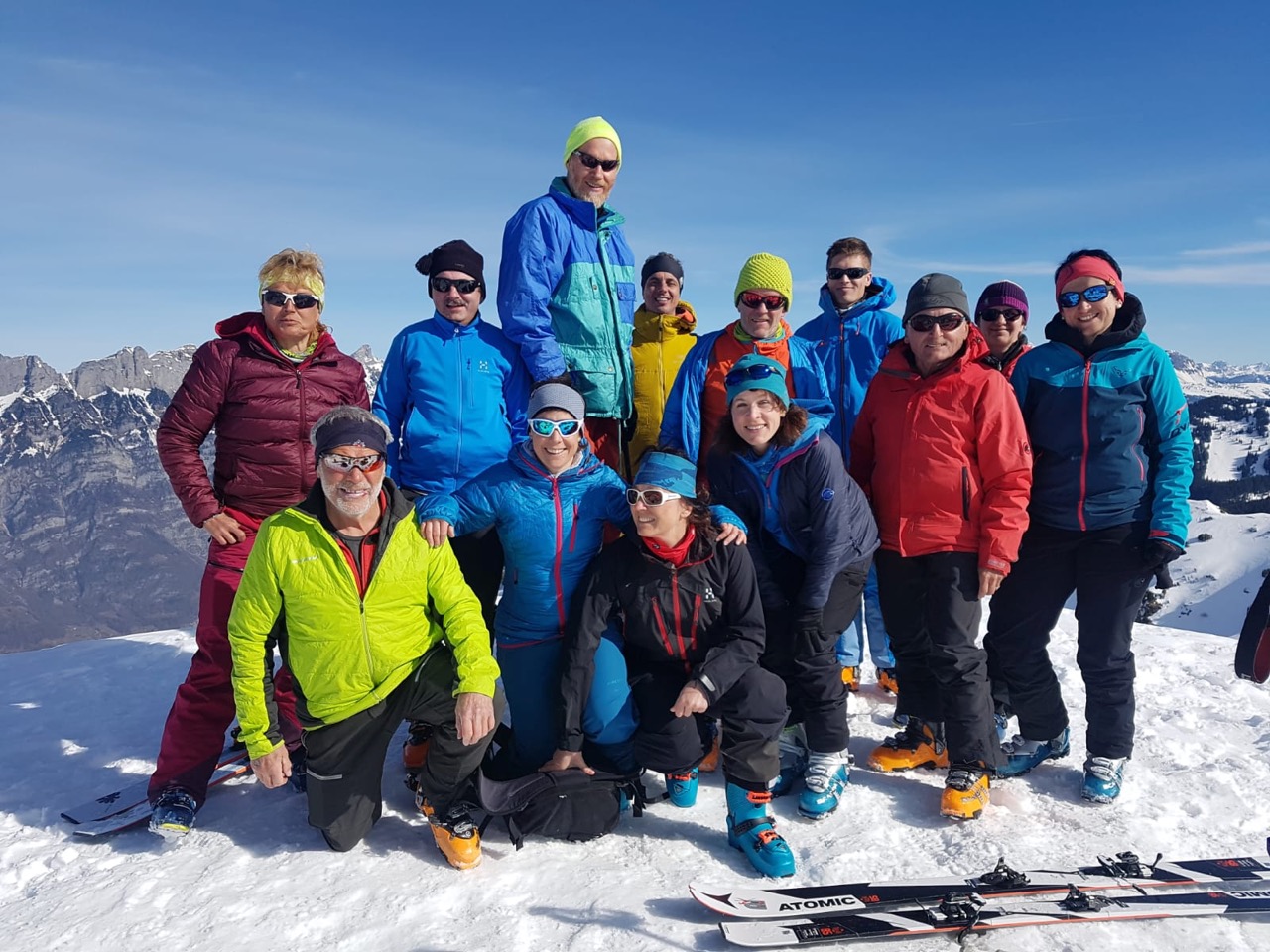 Wenn zwei Frauen eine Tour ausschreiben, trudeln so viele Anmeldungen ein wie noch nie in diesem Winter. So kommt es, dass Anita und Rosi eine Gruppe von elf Skiclüblern ins Glarnerland locken. 300 Höhenmeter oberhalb von Mühlehorn werden die Skier angezogen und los geht’s vom Katzenboden zur Gäsialp bis zur Alp Bigligen und von hier ist’s nicht mehr weit auf das 1958 m hohe Alpbigligenstöckli.