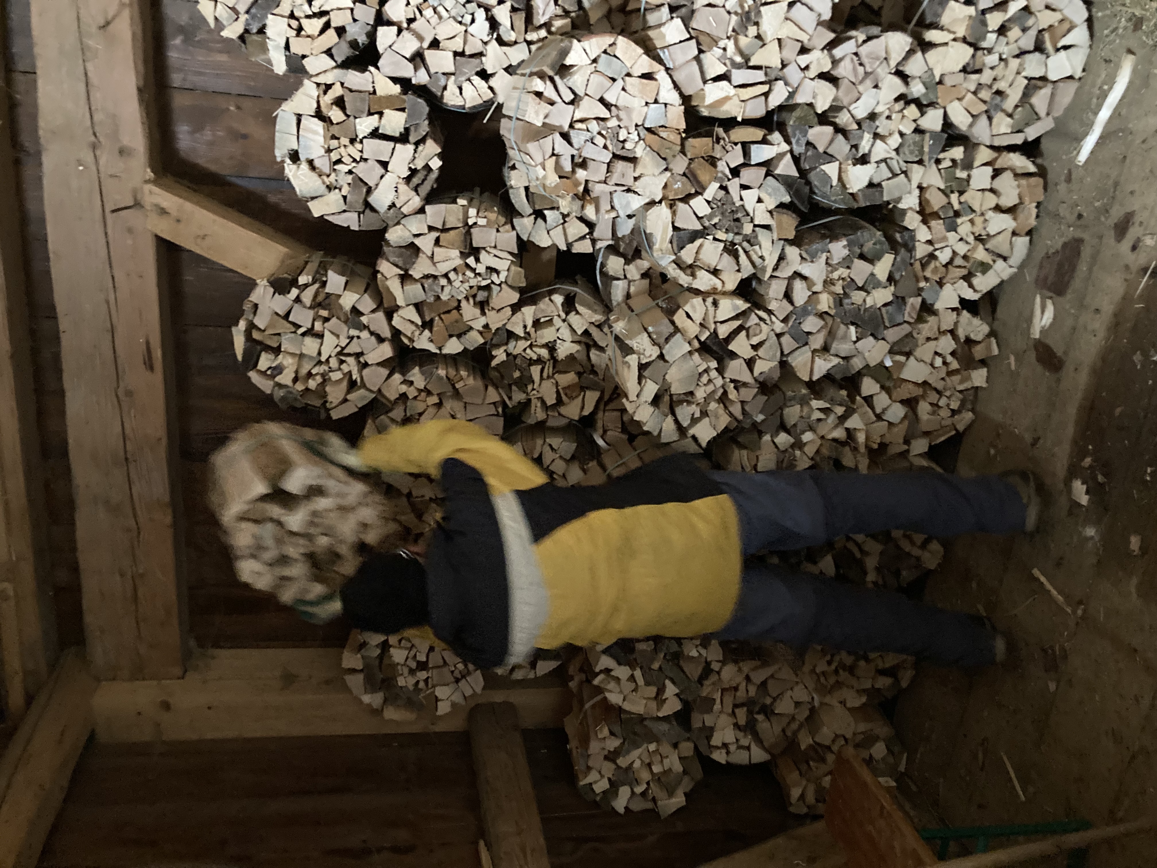 So ging es nach dem Mittagessen in den Endspurt, Aufräumen, Wischen, Gfotz verbrennen, Säge- und Spaltmaschine in den obern Stock hiefen. Kurz gesagt, es lief super. Und sorry, wenn ich nicht jeden erwähnen kann, der mitgeholfen hat. Es werden eben nur „aussergewöhnliche“ Vorkommnisse und Ereignisse wiedergegeben, die der Nachwelt im Tal mitgeteilt werden müssen.