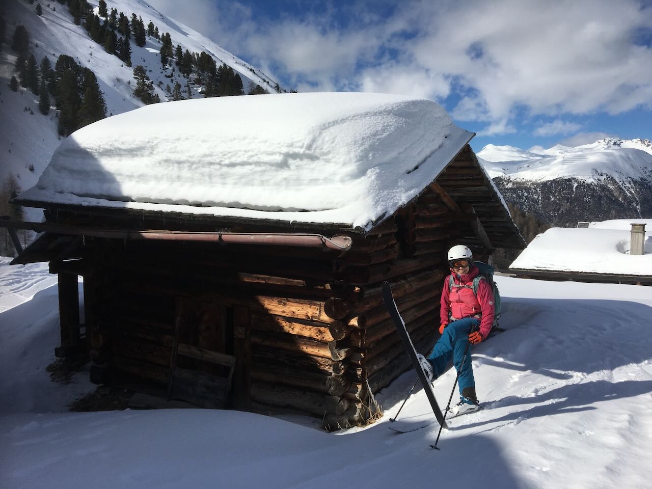 Heidi und ich hatten uns aufgemacht das Rheinwaldhorn als Zweitagestour mit Skiern zu besteigen. Übernachtet wurde in der Länta Hütte. Da es am Samstag sehr neblig war, hatten wir uns für den Zustieg zur Hütte durchs Tal entschieden. Nach ca. 2h hatte ich so krasse Fussschmerzen, dass ich eine Pause machen musste zum Schuhe ausziehen. Dabei hatte ich dann festgestellt, dass ich die Innenschuhe vertauscht hatte, was meine Zehen gar nicht lustig fanden. Heidi fand das so ein bisschen lustig. Danach konnten wir unseren Marsch zur Läntahütte fortsetzen.