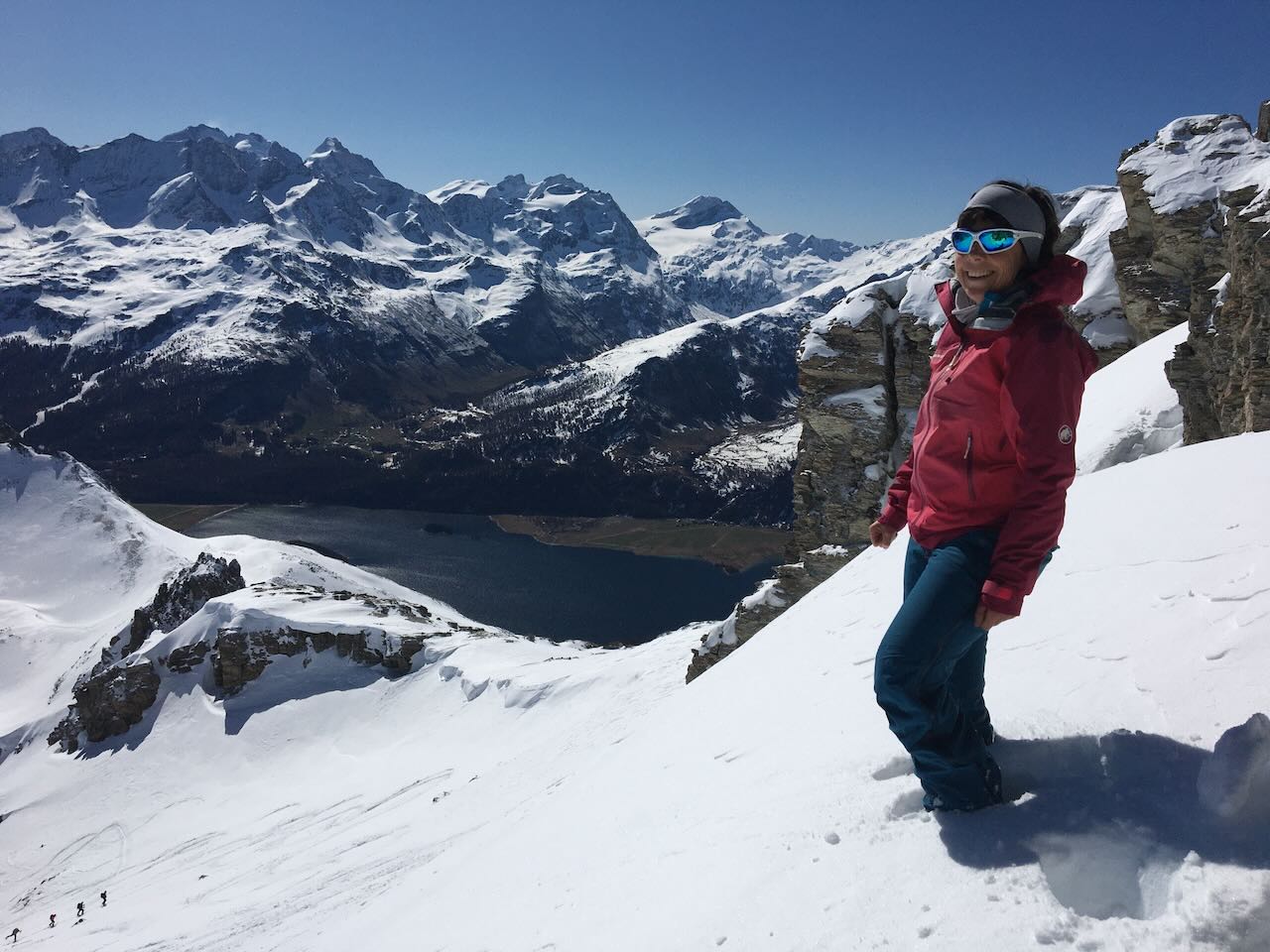 Als ich frisch mit Touren angefangen habe, hat sich Heidi auch um mich Anfänger gekümmert und mir Spitzkehren beigebracht. Ich habe mit ihr zusammen den ganzen kleinen Stockberg müssen/dürfen hoch «Spitzkehren». Eine nach der anderen, unermüdlich, gefühlt 100 Spitzkehren. Die Spur hat danach ausgesehen wie «gewiefelt».