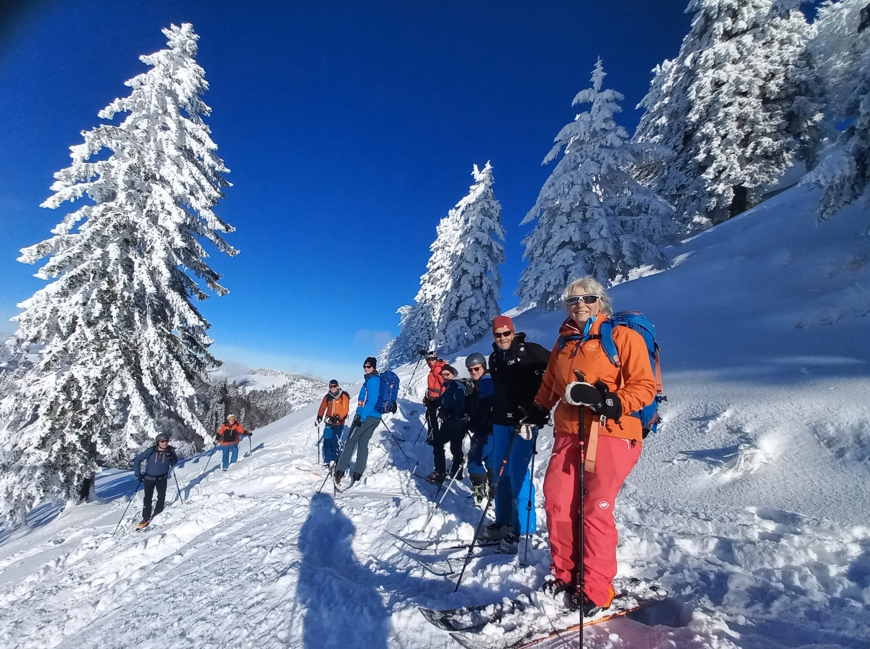 Zu guter Letzt möchte ich mich im Namen aller Teilnehmenden: Kurt R., Jenny, Kurt M., Ruth, Migg, Lehmä, Köbi und Rosy herzlich für die Organisation und Leitung durch Silvano und Tschömy bedanken. Die Bedingungen waren nicht einfach und das zielsichere Vorspuren bei diesen Sicht- und Schneeverhältnissen verdient grosses Lob. Auch die Tipps und Hilfen bei kleineren Zwischenfällen trugen dazu bei, diese Tour als unvergessliches Erlebnis in Erinnerung zu behalten.