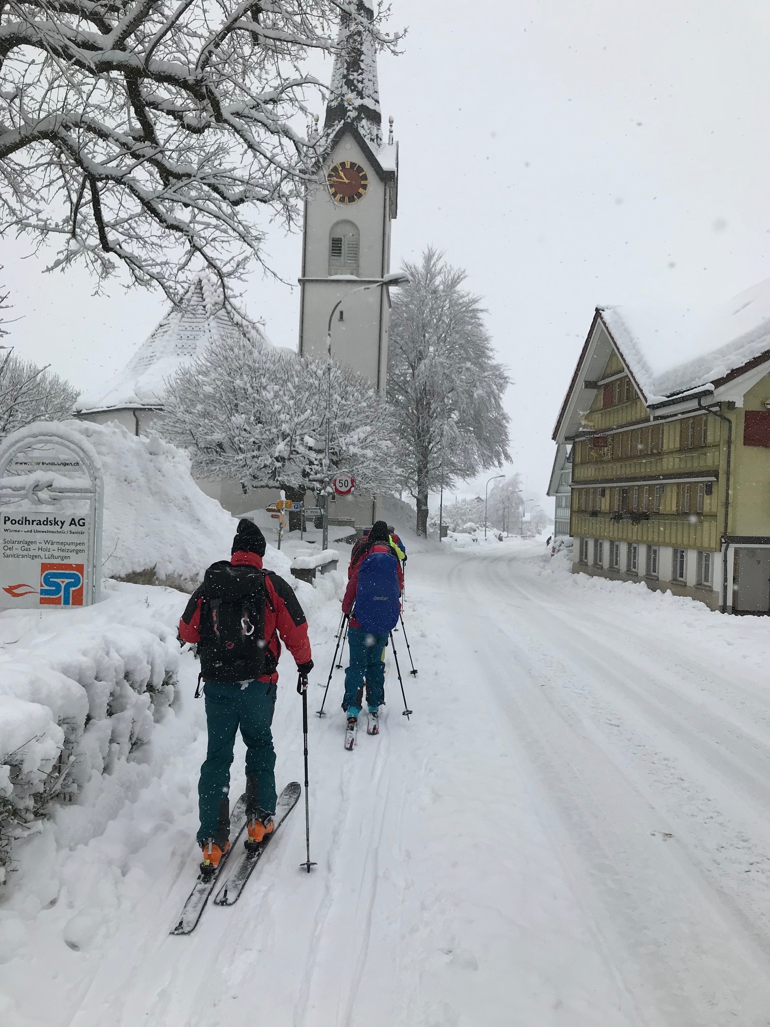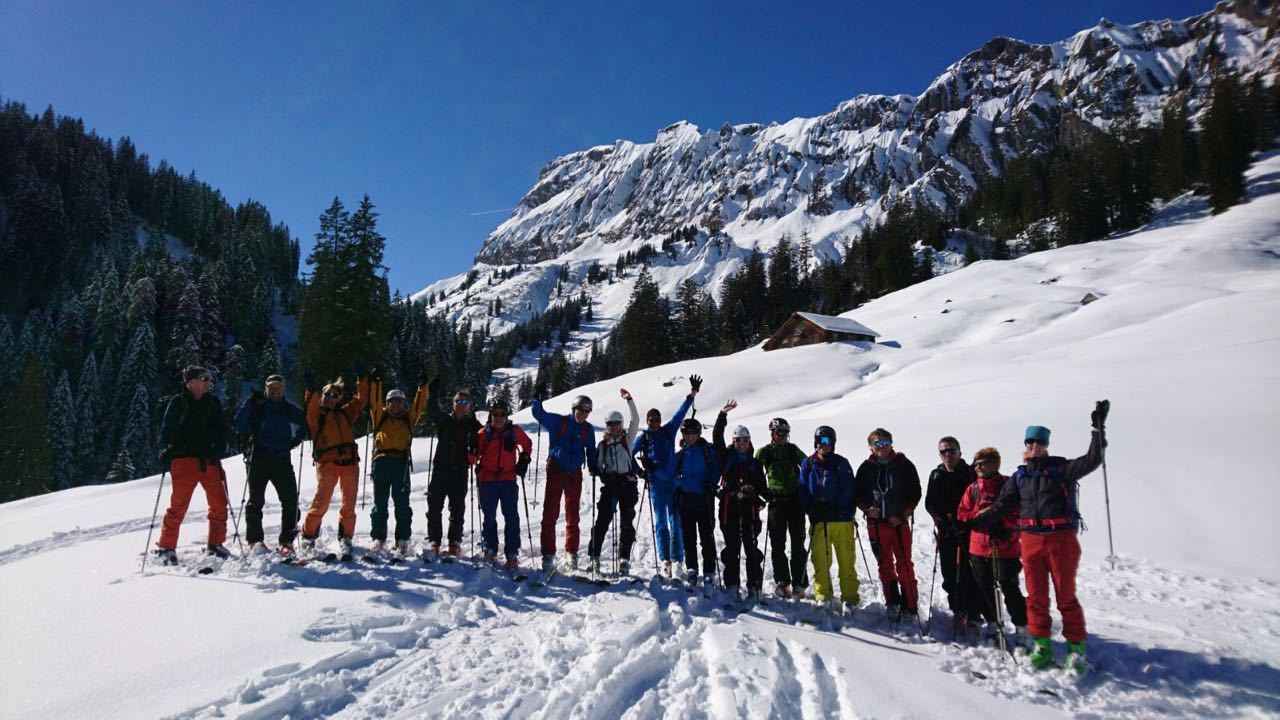 Für einmal starte ich unsere Tourenwoche etwas unkonventionell. Ich dachte mir, ich bereite mich dieses Jahr etwas anders auf die Tourenwoche vor. Und zwar mit vier Stunden Sport-Mental-Coaching in Herisau. Hommm. Ich stelle fest, dass das Thema, oder besser die Art und Weise wie sie uns Teilnehmern übermittelt wird, nicht so meins ist. Während meine «Gspändli» die ersten Höhenmeter auf den Höch Gummen bei Lungern bei gutem Wetter und Schneeverhältnissen unter die Skier nehmen, sitze ich also noch brav in einem Seminarraum. Zu dem Zeitpunkt, wo ich dann mit dem Zug Richtung Bern fahre, kommen dann die ersten Fotos: beim Bier. Ich komme pünktlich in Diemtigen an, wo Guido mich mit dem Auto abholt. Zum gemeinsamen Abendessen schaffe ich es dann noch.