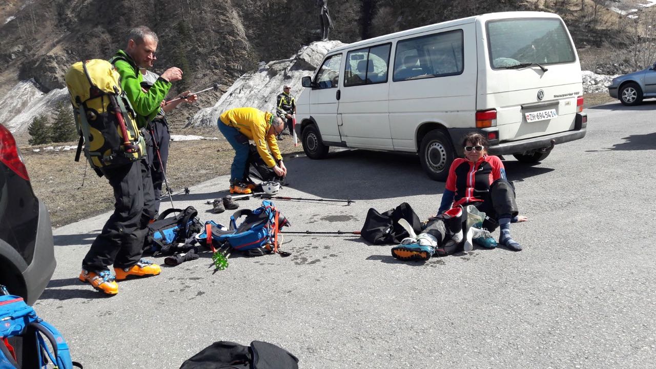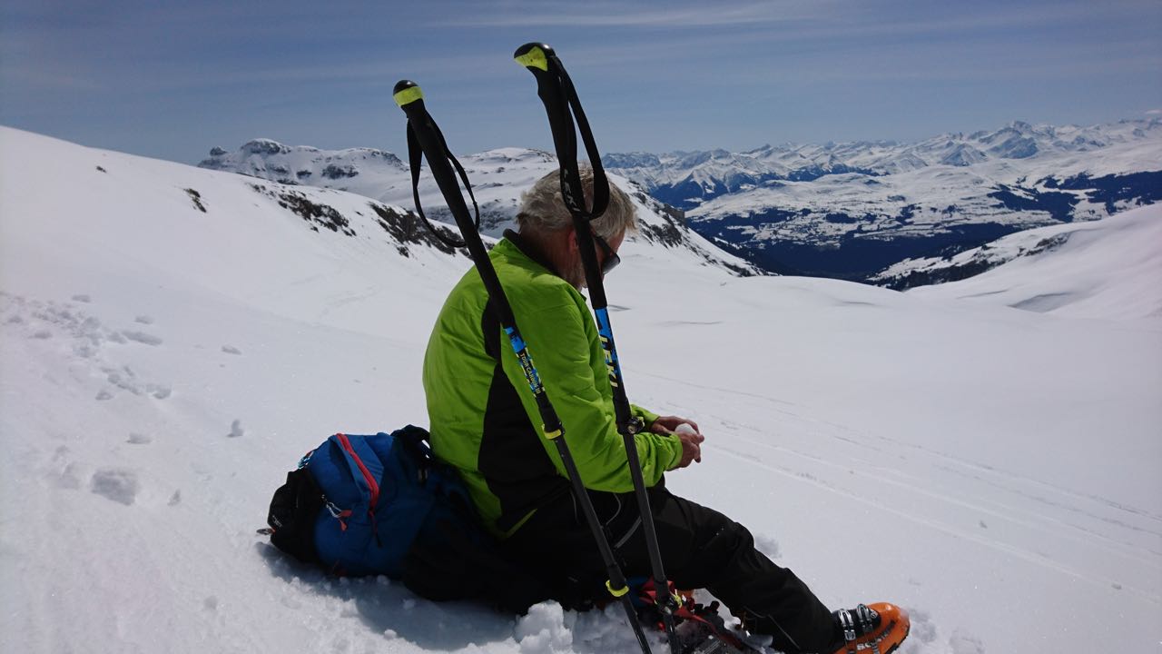 Heute beginnt meine erste Skitourenwoche mit dem SCB. Ich gehe mit der Seniorengruppe, weil es da gemütlicher zu- und hergeht. Dachte ich. Ich bin gut vorbereitet: Gstältli und Helmnetzli gekauft, Skier und Felle gewachst, Fellkleber erneuert.